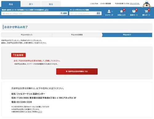 【売却申込伝票の印刷はこちら】のボタンを押し、「売却申込伝票」を発行してください。