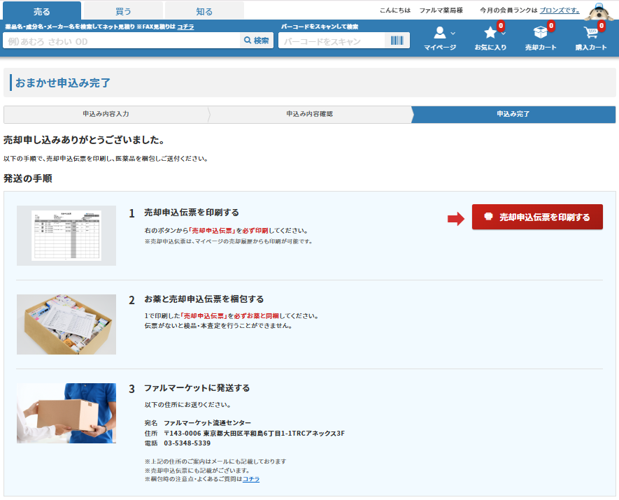売却医薬品の梱包、発送に進みます。
